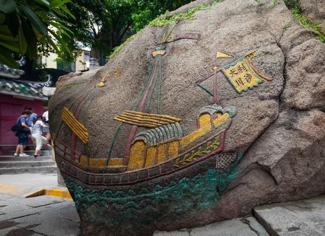 事后,这帮福建人在女子显灵的地方建了座庙,就是今天的妈阁庙。他们还在庙前的大石头上刻了四个字:利涉大川。