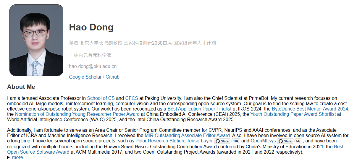 值得注意的是,董豪的另一重身份是上纬启元首席科学家——而智元机器人已在2025年完成对上纬新材的收购,智元联合创始人彭志辉任上纬新材董事长,上纬启元正是上纬新材旗下专注个人机器人业务的子品牌。