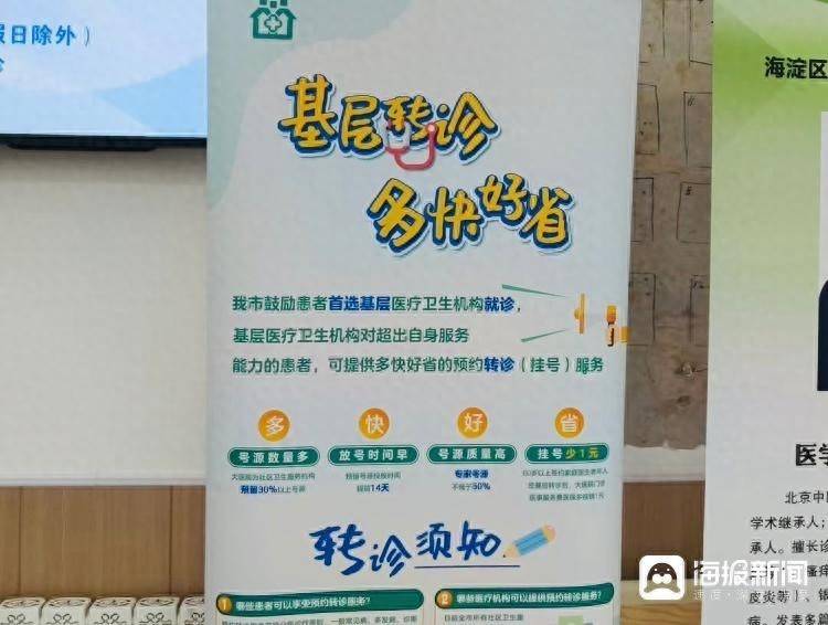 北京市海淀区八里庄社区卫生服务中心展示的基层转诊宣传海报(海报新闻记者摄)